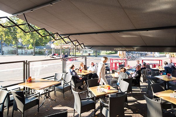 Wij maken de horeca terrasoverkapping voor u op maat. De overkapping kan tot aan de grond worden gebouwd. Zowel uw gasten als de terrasoverkapping zelf hebben dan geen last van windvlagen. Wij maken onder andere terrasvouwdaken, duoschermen en harmonicaschermen. De robuust en stevige terrasvouwdaken die naast een bescherming tegen zon en regen ook tegen stormachtige wind tot windkracht 9 bestand zijn. Met de slimme constructie van duoschermen overdekt u een groot terras van 14 tot 30 meter. Harmonicaschermen zijn een mooie oplossing voor diepe gevelterrassen. Het stevige, waterdichte doek is het hele jaar door weerbestendig.