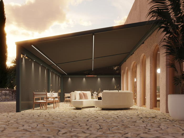 Dit doek blijft steeds strak door het Zip-systeem en dankzij de geïntegreerde screens (optioneel) kan je op elk moment van de dag genieten van je tuin.
