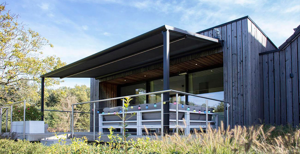 Wordt de gewenste uitval te groot voor een knikarmscherm, dan zijn pergola’s de uitkomst. Met ranke aluminium profielen wordt er voor gezorgd dat het doek strak opgespannen is en de nodige schaduw creëert. Zo heeft u toch een schaduwdoek tot de gewenste afstand van uw gevel.